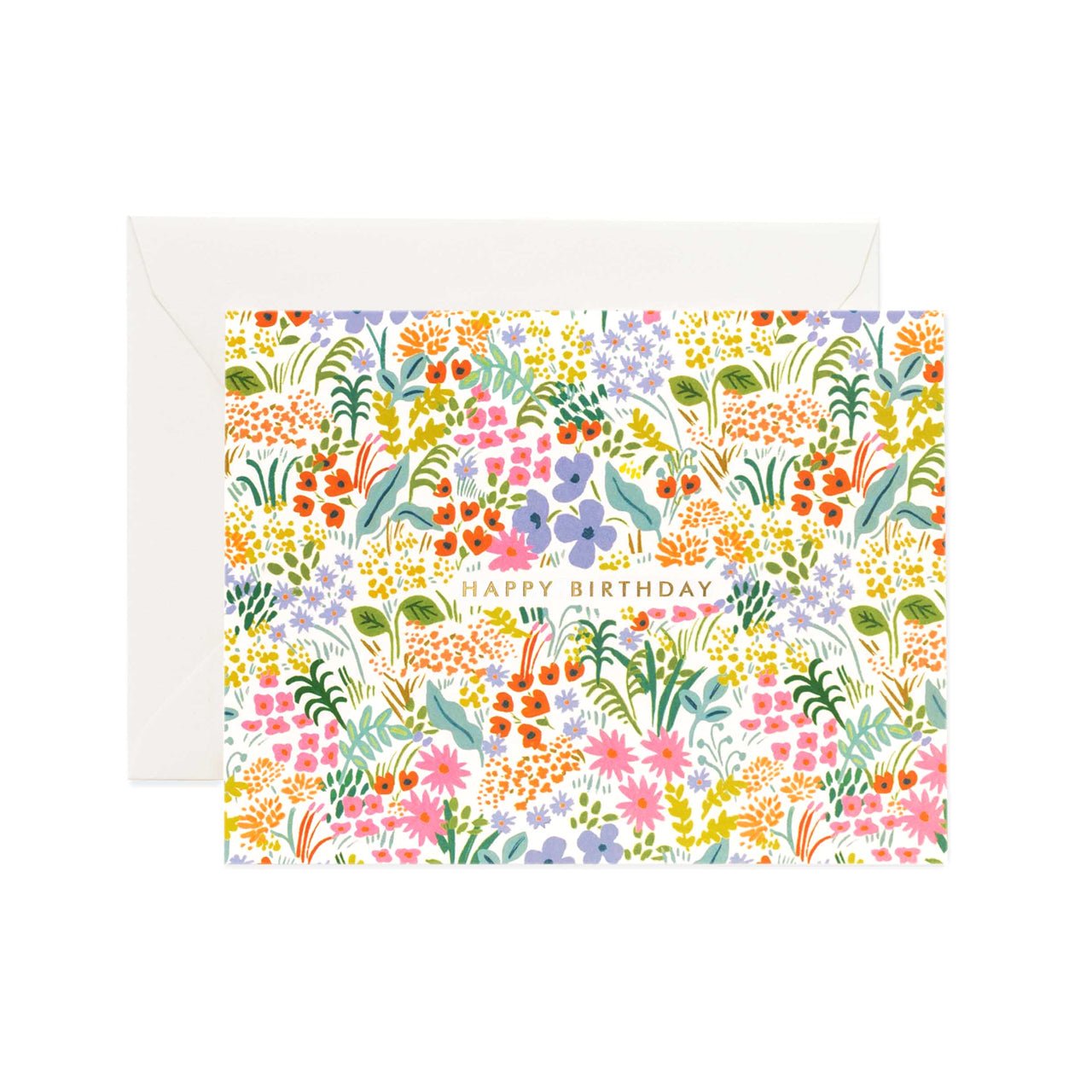 Add a spray of floral colour to your birthday greeting with the rugged, bustling life of the Prairie Birthday card from Rifle Paper Co. This illustrated card is blank inside and comes with its own high quality envelope. All Rifle Paper Co products are printed on high quality FSC-certified paper stocks.